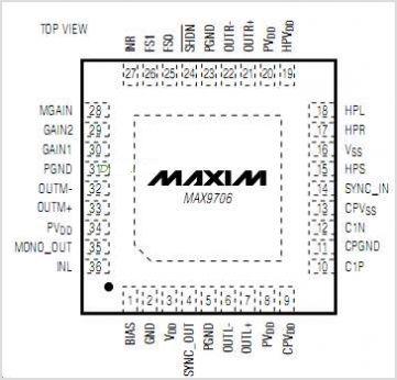 MAX9706/MAX9707具有引腳設(shè)置增益、同步輸入、輸出,以及使電源電流降至1μA的關(guān)斷模式。所有放大器具有雜音抑制電路。該器件可工作在-40℃至+85℃擴(kuò)展工業(yè)級(jí)溫度范圍,采用熱增強(qiáng)型36引腳(6mm x 6mm x 0.8mm)薄型QFN封裝。