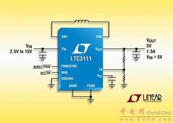 Linear推出同步降壓-升壓型轉換器 LTC3111,該器件可在很寬的電源范圍內工作,包括單節或多節電池、超級電容器組和交流適配器,提供高達 1.5A 輸出電流。LTC3111 的輸入和輸出電壓范圍為 2.5V 至 15V,從高于、低于或等于穩壓輸出的輸入電壓提供穩壓輸出。該器件采用的低噪聲降壓-升壓型拓撲在降壓和升壓模式之間提供連續和無抖動的轉換,從而使其非常適用于 RF 和其他噪聲敏感型應用,這類應用在使用可變輸入電源時,必須保持低噪聲和恒定的輸出電壓。