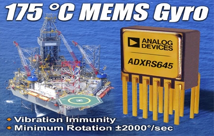 ADI近日推出首款也是唯一能在石油和天然氣鉆探設(shè)備常見(jiàn)的最高175攝氏度高溫環(huán)境下正常運(yùn)行的MEMS陀螺儀ADXRS645。