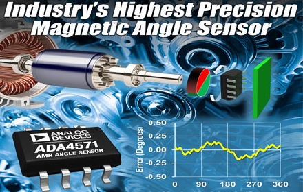 ADI推出業內精度最高、速率最快的磁性角度傳感器ADA4571。 相比競爭對手的角度傳感器產品,ADA4571傳感器具有高分辨率的特點,其精度高四倍(最大值:0.5°),速率快60%,功耗低40%。