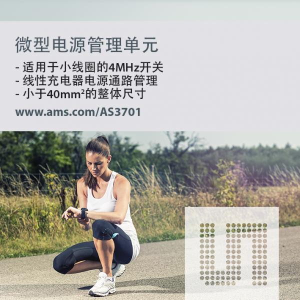 ams產品市場經(jīng)理Bernd Krafthoefer表示:“AS3701融合了ams多年設計和制造小型高效電源電路的豐富經(jīng)驗,是如今最先進的小型化電源電路,非常適合空間緊湊的可穿戴式設備,能有效延長設備的電池壽命。”
