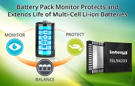 Intersil公司精密產(chǎn)品高級(jí)副總裁Philip Chesley表示:“Intersil高度集成的電池組檢測(cè)器使得設(shè)計(jì)鋰離子可充電電池管理系統(tǒng)變得很容易。我們的客戶看重功能豐富的ISL94203能夠延長(zhǎng)電池續(xù)航時(shí)間,并提供高精確性的電池單元平衡和對(duì)快速變化的負(fù)載進(jìn)行快速響應(yīng)。”