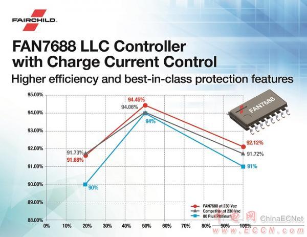 FAN7688采用了Fairchild創(chuàng)新性的充電電流控制技術,能夠獨一無二地采用電流模式控制,有別于其他傳統(tǒng)LLC解決方案中采用的電壓模式控制。作為業(yè)內首款且唯一的帶電流模式控制和同步整流功能的LLC諧振控制器,F(xiàn)AN7688不僅能夠針對負載快速變化實現(xiàn)更精確、更快速的輸出調節(jié),同時簡化了控制回路,與傳統(tǒng)LLC諧振控制器相比,更易設計集成到電源系統(tǒng)中。另外,F(xiàn)AN7688的自適應雙緣次級端同步整流控制方法確保了負載和線路瞬變期間的高可靠性和穩(wěn)定的同步整流操作。