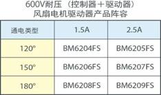 控制器包括常用的120度通電、150度廣角通電、180度正弦波三種通電類型,輸出電流包括1.5A和2.5A兩種,共6種產品,可滿足廣泛的市場需求。