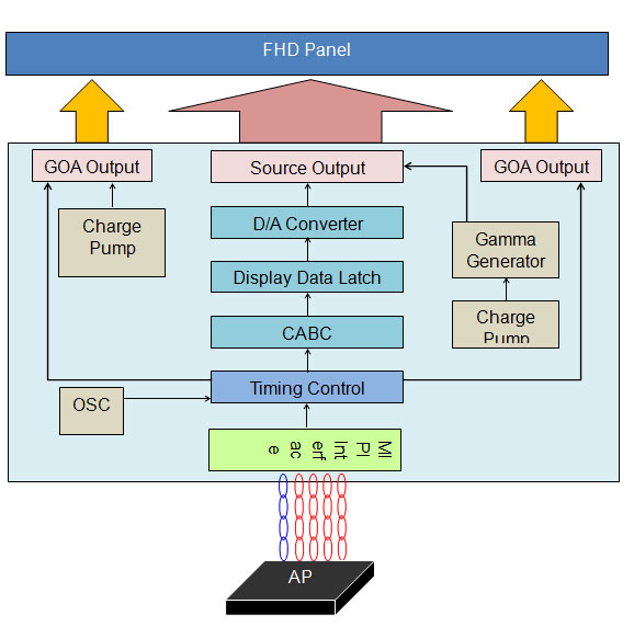 示意圖說明:驅(qū)動(dòng)芯片配合Timing controller 工作原理