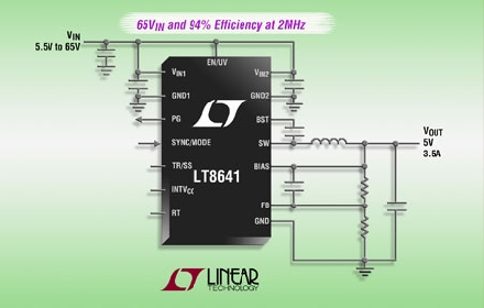 Linear推出3.5A、65V 同步降壓型開關穩壓器 LT8641。該器件采用獨特的 Silent Switcher® 架構,并結合了擴展頻譜頻率調制功能,即使在開關頻率超過 2MHz 時,也能使 EMI / EMC 輻射降低超過 25dB,從而可輕松通過汽車 CISPR25 Class 5 峰值和平均值限制的要求。在 2MHz 開關頻率時,該器件的同步整流可提供高達 94% 的效率。其 3V 至 65V 輸入電壓范圍使 LT8641 非常適合單節或兩節電池的汽車 / 交通運輸和工業應用。