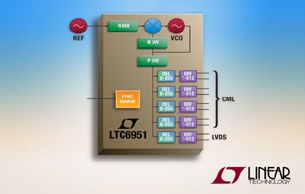 Linear推出低相位噪聲整數N合成器LTC6951,該器件集成了 VCO 和超低抖動時鐘分配電路,非常適合為數據轉換器提供時鐘。LTC6951 提供 4 個高性能電流模式邏輯 (CML) 輸出,每個輸出都配備了一個獨立的低噪聲時鐘分頻器和數字延遲構件,以涵蓋從 1.95MHz 到 2700MHz 的寬頻率范圍。當以高輸入頻率和快速輸出數據傳送速率為數據轉換器提供時鐘時,憑借總的115fsRMS絕對抖動 (SNR 方法),LTC6951 可提供實現最佳 SNR 所必需的低抖動時鐘。