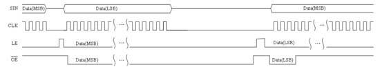 4. data(B)傳送完成后,由LE產(chǎn)生latch信號(hào),鎖存data(B),并接著傳送data(C)