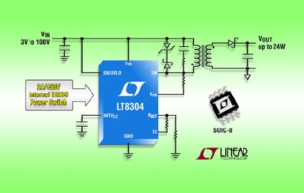 LT8304 采用小型耐熱增強型 SO-8 封裝。擴展和工業溫度級版本在 –40°C 至 125°C 結溫范圍內工作。千片批購價為每片 3.55 美元。