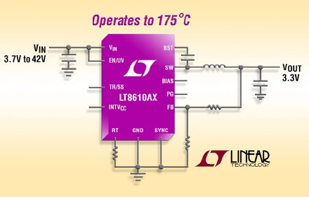 照片說明:42V、3.5A (IOUT)、同步降壓型轉換器可工作在 175°C