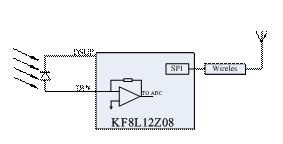 物聯網的實現本質就是傳感器+低功耗MCU+無線傳輸,KF8L12Z08集成了光電傳感器檢測和低功耗MCU,通過SPI和外物無線模塊進行通信,可以選取sub-G、wi-fi或者藍牙等方式。KF8L12Z08內部有400Byte RAM和8KByte字節flash,尤其適合于一些私有協議的物聯網應用場景。 KF8L12Z08不僅適用于煙霧、粉塵、PIR等光電傳感器檢測,還可以用于電力監控、醫療、健康和健身、樓宇自動化及個人電子設備等領域 。 |