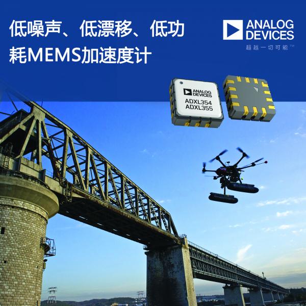 ADI全球領先的半導體公司最近推出了三軸MEMS加速度計,能以極低的噪聲執行高分辨率振動測量,可通過無線傳感器網絡實現結構缺陷的早期檢測。最新ADXL354和ADXL355加速度計的低功耗性能可以延長電池壽命,同時通過降低電池更換次數而延長產品壽命。ADXL354和ADXL355的低噪聲加上低功耗性能使得現在能以高性價比實現低電平振動測量應用,比如結構健康監控(SHM)。此外,ADXL354和ADXL355加速度計的傾斜穩定性提供了溫度與時間范圍內的出色可重復性,是采用慣性測量單元(IMU)和傾角計的無人機中方向與導航系統的理想之選。這些最新的加速度計產品可在所有環境下提供可重復的傾斜測量,它們在惡劣環境中無需進行大量校準即可實現最小傾斜誤差。