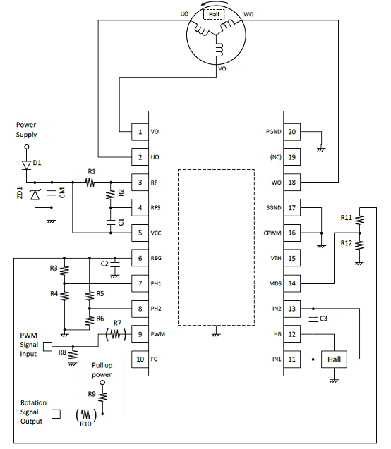 ∙Regulated voltage output pin for Hall sensor bias