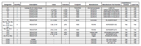 LV8811G評估板材料清單: