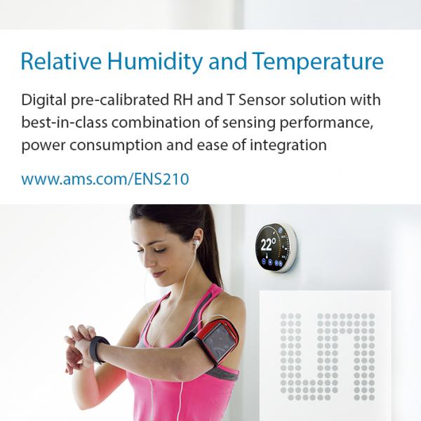 當用于可穿戴設備時,ENS210的相對濕度和環(huán)境溫度讀數有助于提高對環(huán)境條件依賴性極高的身體運動測量的精確性和可靠性。它也可以為溫度調節(jié)器以及諸如空調和凈化系統、冰箱、干衣機、微波爐、廚房抽氣機和天氣監(jiān)測裝置等互聯家用電器提供精巧的自動化操作或性能提升功能。