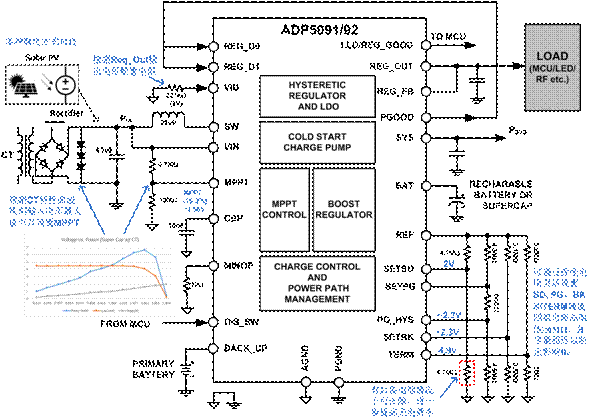 ADI公司對于能量收集芯片技術有著創新的解決方案。張松剛現身分享道:“針對能量采集芯片的挑戰,對于大幅提高轉換效率很多物理定律及相關材料問題,不是一個很容易解決的問題,大幅度降低芯片自身的功耗及管理好采集到的能量則相對比較容易實現。ADI目前推出了一系列基于太陽能的能量采集芯片—ADP5090/5091/5092,是一款非常好的解決方案。首先它具有極低的功耗(<300nA)并在很低的電壓(380mV)下即可啟動工作;它可以管理采集到的微能量并給電池(鋰電池、薄膜電池、超級電容等)和電容充電,使之達到負載所需的工作電壓;可以支持突發性的射頻輸出或MCU,并支持第二個后備電池;對于如何提高太陽能的轉換效率,該芯片特別設計了MPPT控制功能來保證太陽能電池板能一直工作在最大功率點上,只需要手表盤大小的太陽能電池板即可工作。該芯片可以廣泛應用于可見光照射下的任何便攜式設備、無供電電源的傳感器、無線發射模塊、可穿戴設備等多種應用中。”
