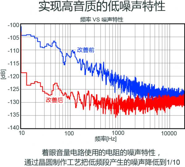 ・將音量電路產生的低頻噪聲降低到1/10