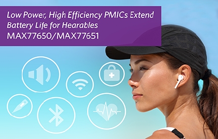 | Maxim最新PMIC為耳戴式產品提供最低待機功耗和高效率,體積縮小一半以上 |