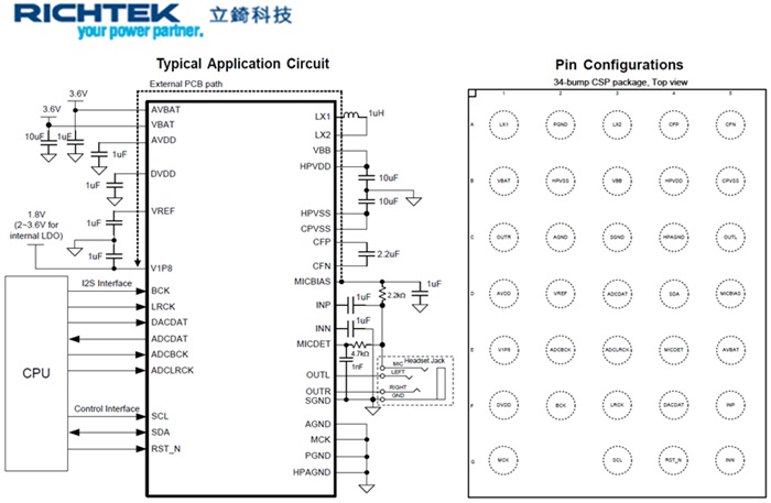 RT5503應用于高分辨率I2S接口頭戴式耳機音量放大裝置 , 在114dB信噪比及30mW功率的條件下 , 總諧波失真加噪聲可達0.001%@16Ω負載 , 透過先進Class-G多層次結構操作 , 可以有效降低功耗延長撥放時間 , RT5503也提供其他附加功能 , 阻抗感知功能提供負載信息 , 使得在不同負載情況下可程序適當的音量來維持穩定的輸出功率 , 數字雜音柵欄功能于無撥放數據時 , 在平緩降低數字增益值后啟動模擬靜音模式以消除輸出雜音 , 數字音頻接口支持192KHz , 24-bit , 并在4dB~96dB增益范圍內提供每階0.5dB微調 。