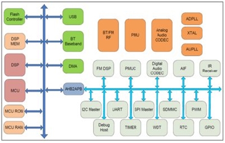 RDA5836在單芯片上集成了高性能 MCU、Bluetooth、FM Radio、PMU、Codec 及Memory,支持SBC、 AAC、WMA等多種解碼算法,擁有豐富的接口資源,可以滿足各類藍牙產(chǎn)品的開發(fā)需求。同時,根據(jù)應用領域的不同,RDA5836提供多種封裝形式,最大程度滿足客戶對藍牙音頻和連接方案的差異化需求。其獨特的回聲消除和噪音抑制技術,確保超清晰通話效果,藍牙音頻信噪比(SNR)達到 102dB,保證完美音質(zhì)。