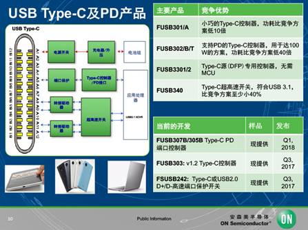 此外,李先生還提到,在10Gbps USB3.1超高速開關方面,安森美半導體的FUSB340作為小的分立方案可用于手機平板電腦、筆記本電腦所需的可正反逆插的Type-C USB 3.1連接器。而安森美半導體的ESD8704可用于保護超高速線路,EDSD7471用來保護低速和輔助線路。
