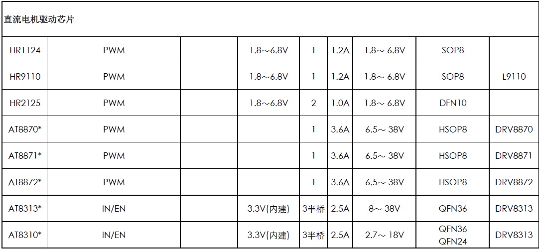 下表是HT馬達驅動IC選型指南: