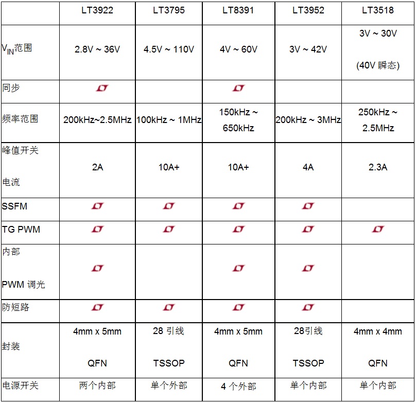 表 1:輸入范圍很寬的 LED 驅(qū)動器