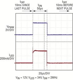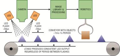 LT3922 PRODUCES CONSISTENT LED OUTPUT REGARDLESS OF PERIOD BETWEEN FLASHES: