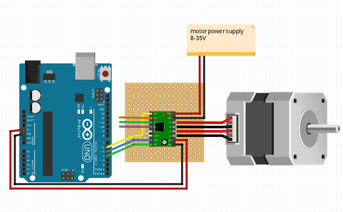 關于接線更詳細的相關資料:http://fritzing.org/projects/a4988-single-stepper-test/