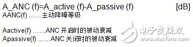 得到令人滿意的濾波曲線以后,AS3415濾波器仿真工具同時(shí)提供材料清單輸出功能。由于該工具和AS3415的評(píng)估板相匹配,材料清單中列出的項(xiàng)目能夠被焊接在評(píng)估板上,以測(cè)試帶有該濾波器的ANC的性能。測(cè)試包含兩項(xiàng)內(nèi)容:一是耳機(jī)戴在人工頭上時(shí)的被動(dòng)衰減測(cè)試,二是打開(kāi)AS3415芯片并配置好前饋降噪功能時(shí)的頻響測(cè)試。ANC性能計(jì)算如下: