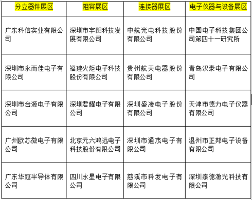 在此次電子展中,包括廣東科信實業(yè)有限公司、深圳市宇陽科技發(fā)展有限公司、中航光電科技股份有限公司、中國電子科技集團公司第四十一研究所、深圳市永而佳電子有限公司、福建火炬電子科技股份有限公司、貴州航天電器股份有限公司、青島漢泰電子有限公司等在內(nèi)的國產(chǎn)企業(yè)將集體亮相并帶來其最新的技術(shù)產(chǎn)品。