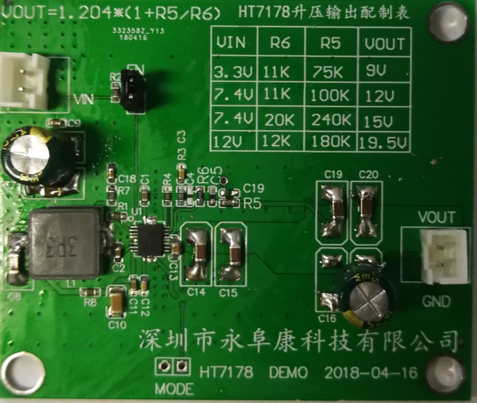 HT7178具有2.7V至12V寬輸入電壓范圍,可為采用單節(jié)或兩節(jié)鋰電池,或12V鉛酸電池的應(yīng)用提供支持。該器件具備12A開關(guān)電流能力,并且能夠提供高達(dá)20V的輸出電壓。