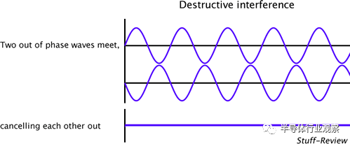ANC技術的原理并不深奧,高中物理就教過,就是波的干涉。如果大家對高考復習還記憶猶新的話,一定還記得如果兩列波幅度相同,相位相反,則它們干涉的結果是互相抵消,看不到波了!