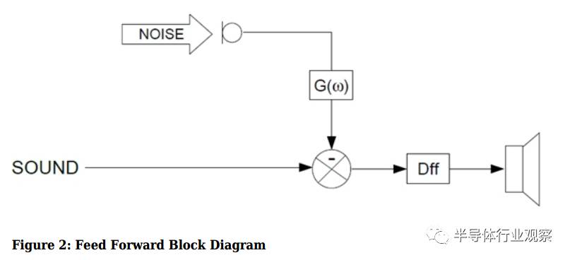 如果把系統畫成信號流圖,就是下圖,噪聲在麥克風采樣后進入信號處理電路,產生“反”噪聲,并與音樂一起送進耳機內。這種模式稱為前饋有源噪聲消除。
