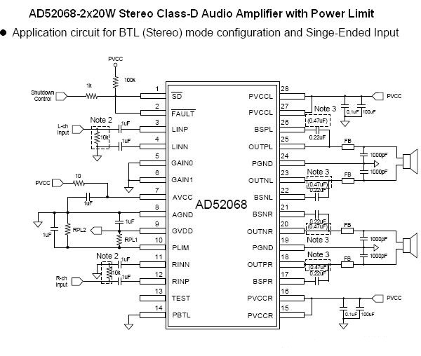 BTL Mode: 20W/CH into 8W @<10% THD+N