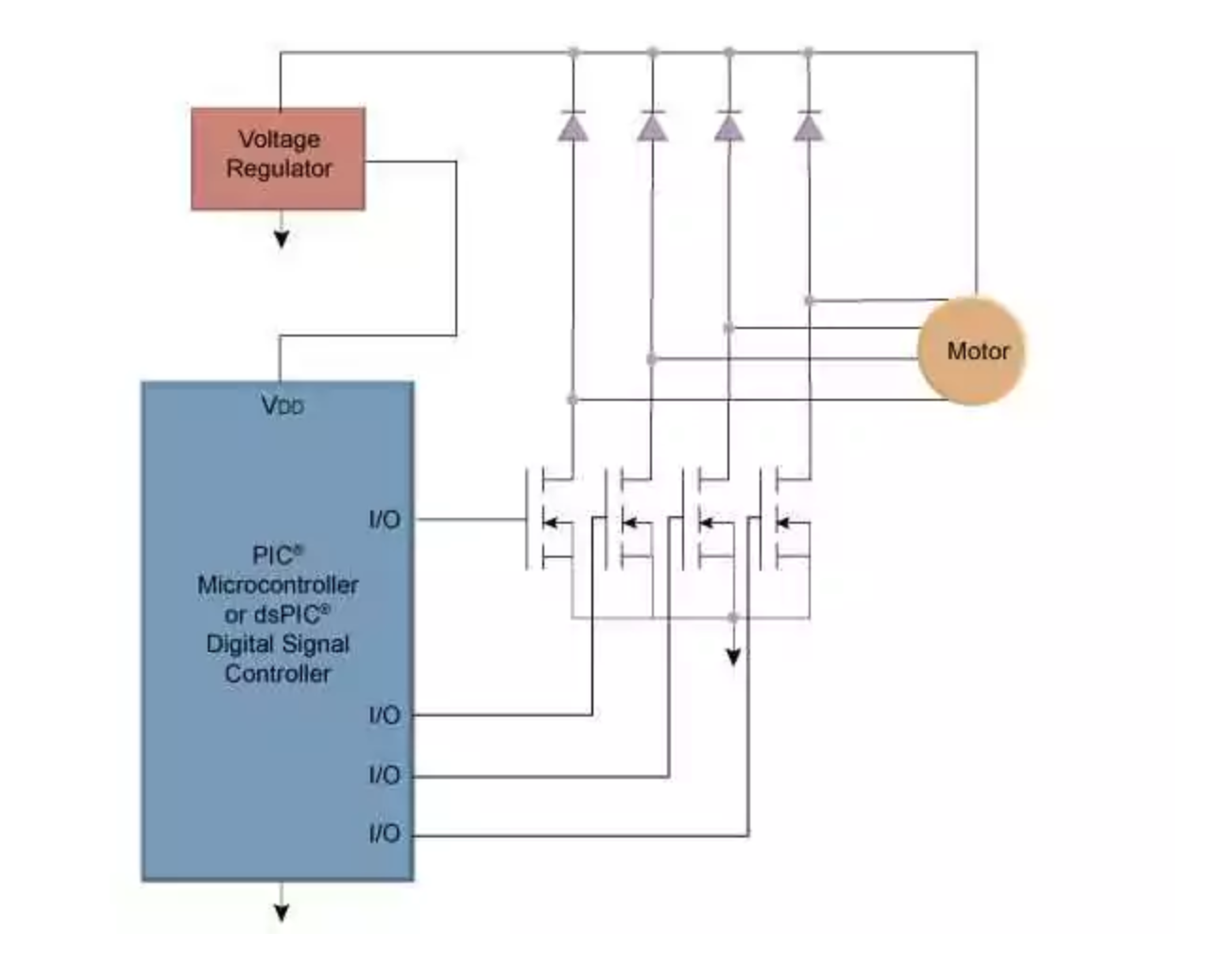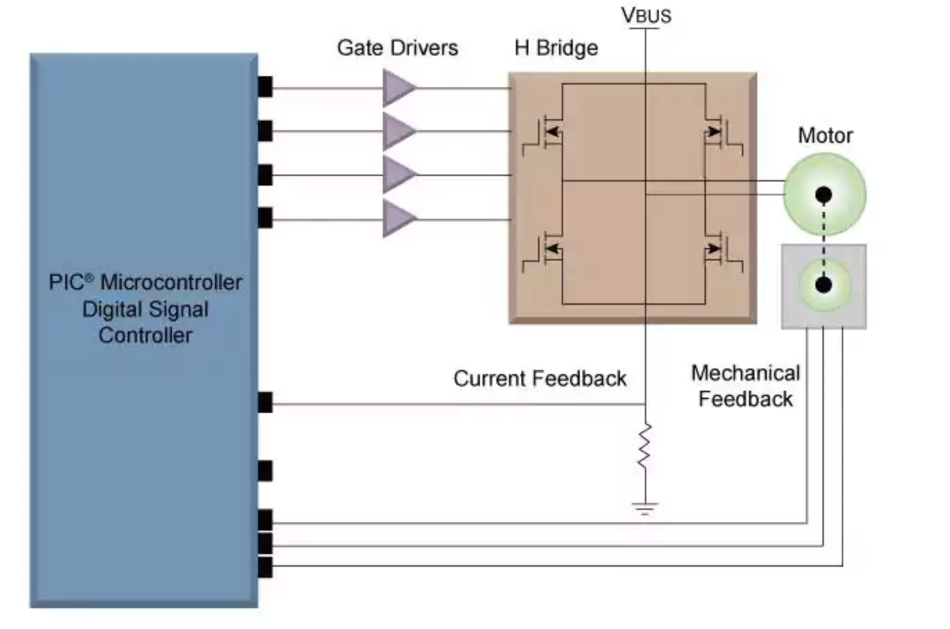 Microchip有刷直流電機控制方案的特點是良好的可控性、線性轉矩/電流曲線、速度與施加的電壓成比例、低散熱等。