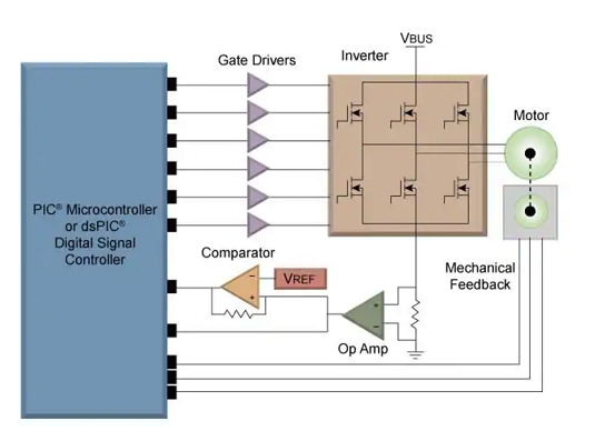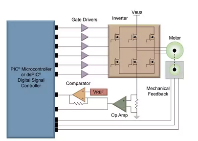 Microchip 無刷直流電機應用還包括防鎖剎車系統、磁盤驅動器伺服、油門控制等。