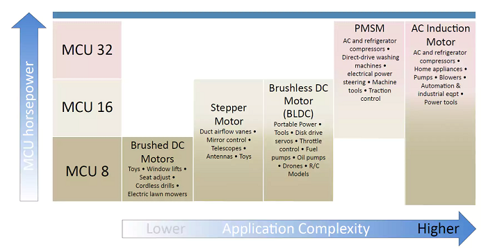 永磁同步電機(PMSM)具有很高的可靠性和高效率。永磁同步電機可以幫助您在不減少損耗的情況下縮小設計扭矩。永磁同步電機需要像無刷直流電機那樣換向,但需要更復雜的控制算法,因此需要性能更高控制器,如Microchip的dsPIC DSC和32位PIC32MK或基于Cortex M的解決方案等。
