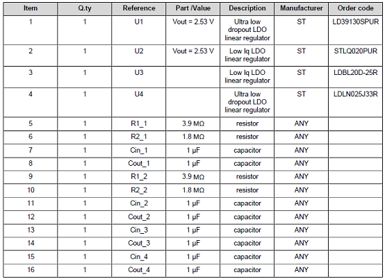 評估板STEVAL-LDO001V1材料清單: