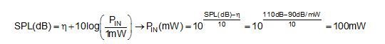 使用方程式1或圖1,首先確定達到SPL目標值所需的輸入功率:
