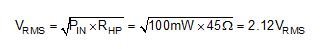 這兩個方程式均包含標稱耳機阻抗,RHP,它也由耳機廠商指定。為便攜式電子設備設計的耳機具有低阻抗(低至16Ω),這是因為耳機上的低壓信號將仍能提供足夠的功率。對于那些非便攜式應用中使用的耳機,比如說專業錄音工作室中用到的耳機,它們的阻抗最高有可能達到600Ω。