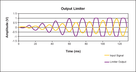 圖3. 輸出限幅器在過壓情況下造成輸出信號削波,因而產生聽得到的失真。