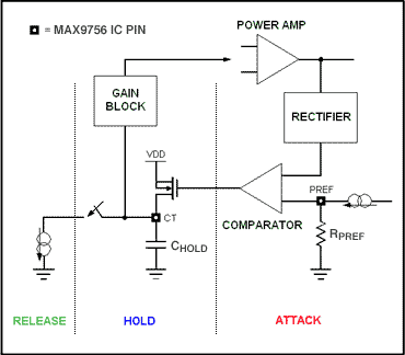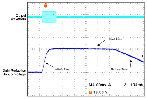 圖6. ALC功能三個重要定時指標的圖形表示。數據來自于MAX9756。