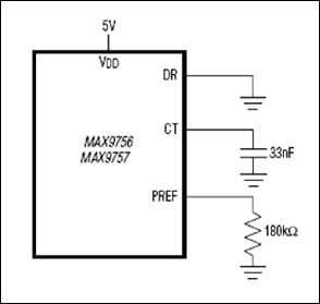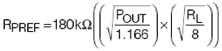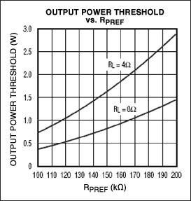 連接于PREF和地之間的一只外部電阻設定了鉗制揚聲器輸出的門限(圖7)。公式1給出了這個電阻值和最大預期輸出功率及揚聲器阻抗的關系。