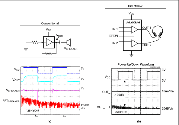 DirectDrive耳機放大器相比傳統的單電源耳機放大器有很多改進。該技術減小了方案的尺寸,節省了成本,并且改善了音質,而其代價僅僅是稍稍增大了芯片的尺寸。