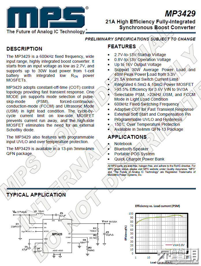 工作電壓範(fàn)圍2.7V~12V;可調(diào)輸出電壓最高13V;內(nèi)置10A的MOS |