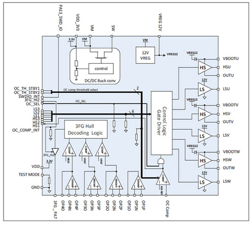 18V、3A三相無刷無感驅動、180˚正弦,集成驅動算法+預驅+MOS |