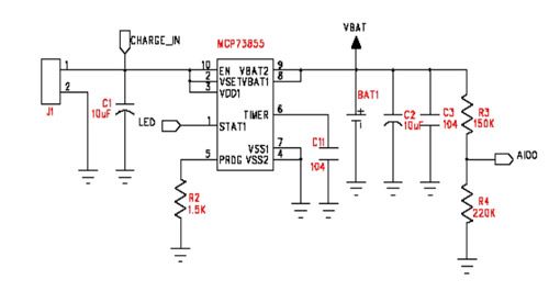 MCP73855可提供鋰電池充電管理功能,片內集成的MOSFET、電流檢測