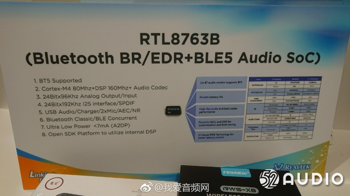 在Computex2018上,Realtek瑞昱展示出了RTL8763B TWS真無線藍牙耳機方案,支持藍牙5.0。