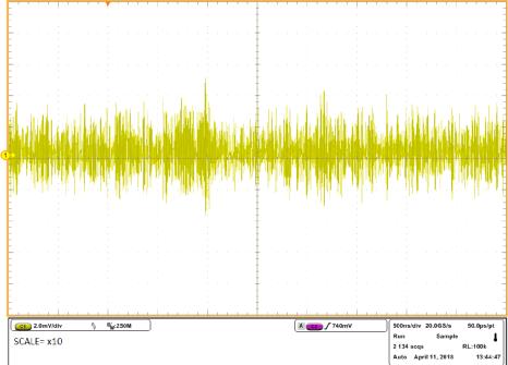 但什么是頻譜噪聲密度呢?如果您及時測量噪聲,您只能看到噪聲的絕對振幅值,但不能看到所有噪聲屬性的頻率。正如上面的圖片所示,噪聲在x10的范圍內。頻譜噪聲密度曲線是所產生的噪聲之和。每一噪聲都是在窄幅的頻率范圍內測量的。您可在下面的圖片中看到頻譜噪聲密度。